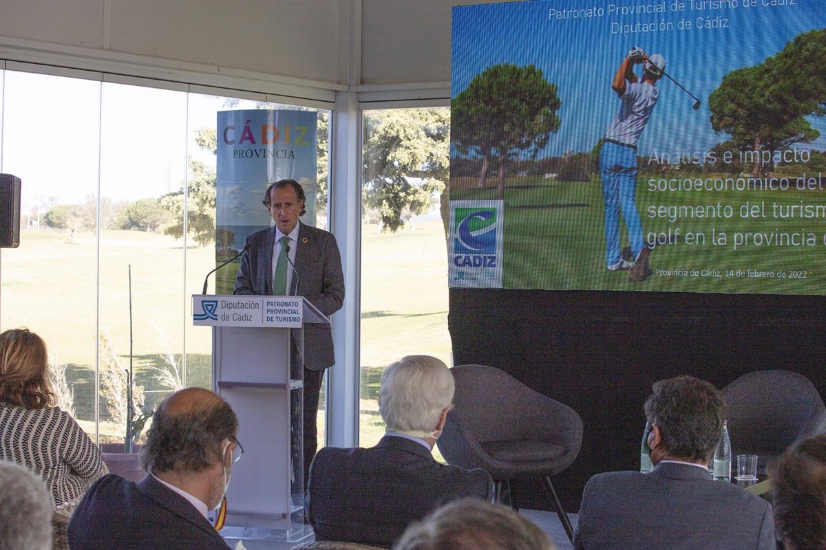 El vicepresidente primero de la Diputación de Cádiz y responsable del Patronato de Turismo, José María Román, ha presentado este lunes las principales conclusiones del estudio 'Análisis e impacto socioeconómico del segmento de turismo de golf en la provincia de Cádiz', en el campo Villanueva Golf de Puerto Real, entre cuyas conclusiones se extrae que este sector aporta "más de 774 millones de euros a la economía provincial".