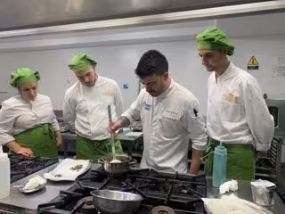 Según ha indicado la Diputación en una nota, Parada ha regresado a su escuela para diseñar y preparar con el alumnado actual el menú que regularmente preparan en la Escuela de Hostelería Fernando Quiñones para servir a público real y que les sirva para practicar lo aprendido en clases teóricas y para adquirir experiencia.