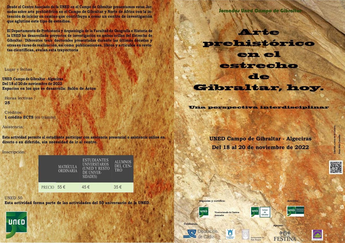 El Centro Asociado a la UNED en el Campo de Gibraltar, en Algeciras (Cádiz), inicia entre el 18 y el 20 de noviembre su ciclo anual de seminarios con la jornada 'Arte prehistórico en el Estrecho de Gibraltar, hoy'. Este ciclo tiene como fin facilitar una formación integral y avanzar en la investigación de asuntos de interés en la comarca.