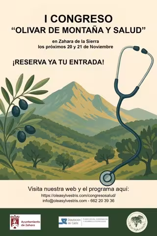 La asociación Olea Sylvestris organiza los próximos 20 y 21 de noviembre de 2025, en Zahara de la Sierra (Cádiz), el primer Congreso 'Olivar de montaña y salud', un encuentro científico y divulgativo que reunirá a más de 200 asistentes y contará con la participación de 13 expertos, entre ellos reconocidos médicos, investigadores y profesionales del sector olivarero. Esta iniciativa se enmarca en el programa DipuInnova Plus, que desarrolla el Área de Planificación, Coordinación y Desarrollo Estratégico de la Diputación Provincial de Cádiz.