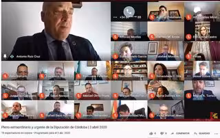El presidente de la Diputación de Córdoba, Antonio Ruiz (arriba a la izda.), interviene en el Pleno celebrado por vía telemática - DIPUTACIÓN DE CÓRDOBA