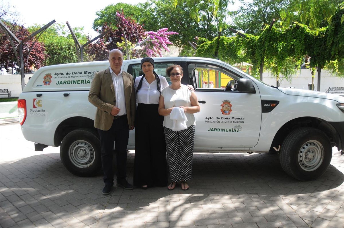 La suscripción de un convenio nominativo entre la Diputación de Córdoba y el Ayuntamiento de la localidad cordobesa de Doña Mencía permitirá a dicho municipio contar con un nuevo vehículo destinado al servicio de jardinería.
