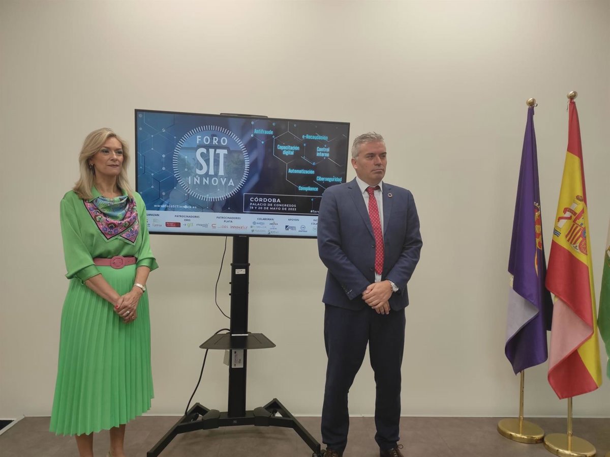 El delegado de Administración Electrónica y Programas Europeos de la Diputación de Córdoba, Víctor Montoro, y la vicepresidenta de Cosital Córdoba, Carmen Parra, en la presentación del primer 'ForoSITinnova'. - EUROPA PRESS