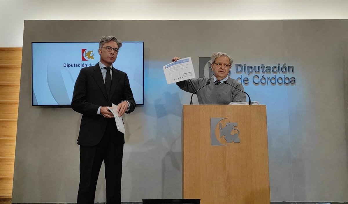 El presidente de la Diputación de Córdoba y responsable de Emproacsa, Salvador Fuentes (dcha.), acompañado por el responsable de Epremasa, Andrés Lorite, presenta la propuesta de actualización de tarifas de agua y basuras. - EUROPA PRESS