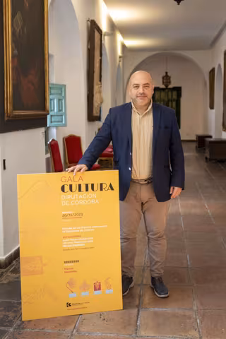 El delegado de Cultura en la Diputación de Córdoba, Gabriel Duque, junto al cartel de la III Gala de la Cultura. - DIPUTACIÓN DE CÓRDOBA