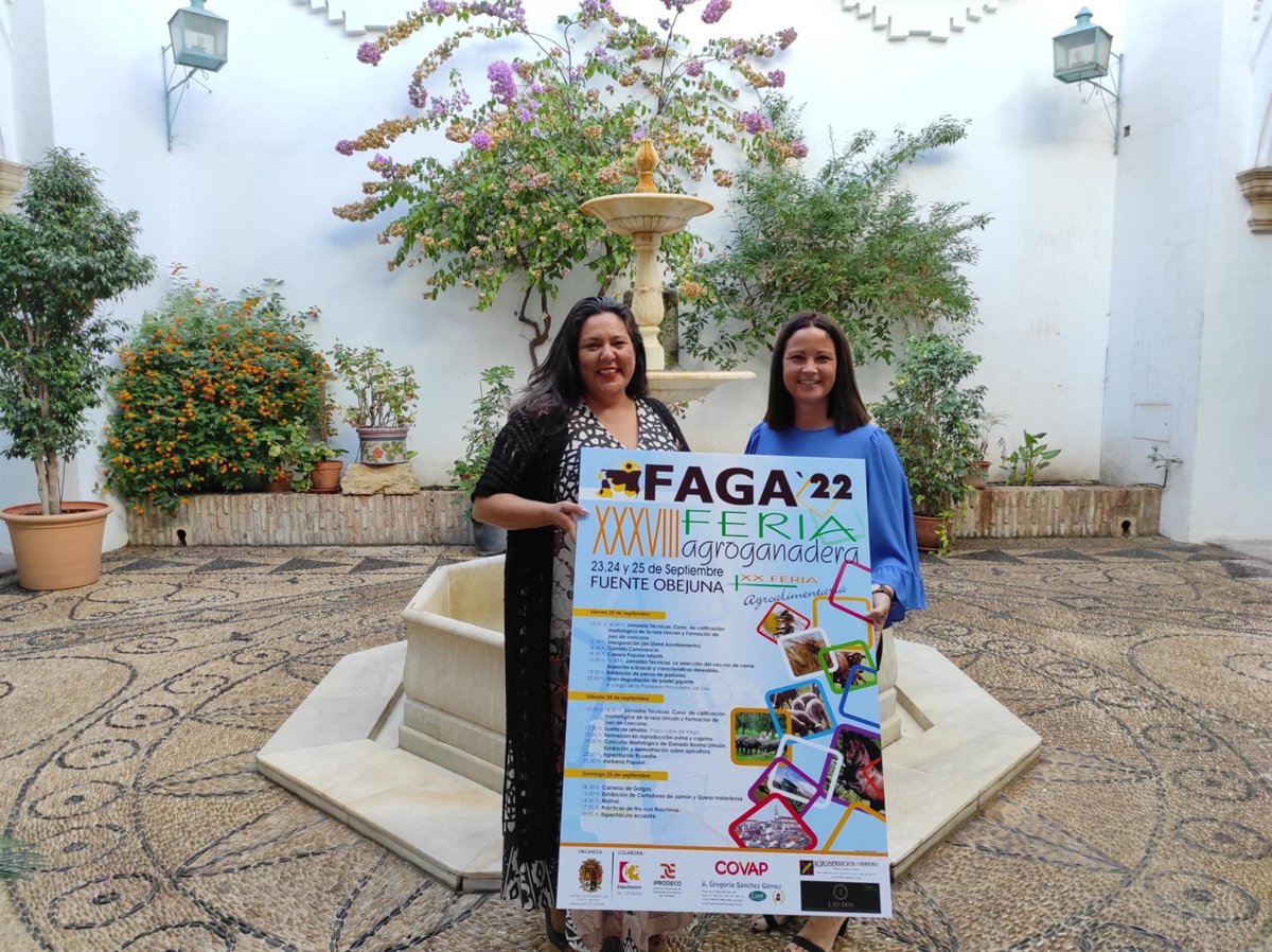 La presidenta del Instituto Provincial de Desarrollo Económico (Iprodeco) de la Diputación de Córdoba, Dolores Amo, ha presentado este viernes, junto a la alcaldesa de Fuente Obejuna, Silvia Mellado, la XXXVIII edición de la Feria Agroganadera, XX Feria Agroalimentaria y III Cinegética 'FAGA 2022', encuentro que se celebrará los días 23, 24 y 25 de septiembre en el municipio mellariense para potenciar los recursos endógenos de la comarca del Guadiato.