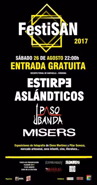 El municipio cordobés de Santaella acogerá el día 26 de agosto la cuarta edición de FestiSan, festival organizado por la asociación Manoteo, con la colaboración de la Diputación de Córdoba, en el que tiene cabida la música, el teatro, la artesanía, la pintura, y la fotografía, entre otras manifestaciones culturales.