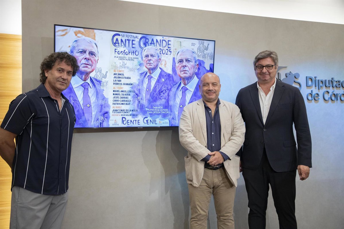 El Festival del Cante Grande 'Fosforito' de Puente Genil, que tendrá lugar el próximo 14 de agosto, alcanza este año su 59 edición en una gala que ha recibido el apoyo de la Diputación de Córdoba, cuyo delegado de Cultura, Gabriel Duque, ha presentado este lunes el cartel del certamen, acompañado del alcalde pontanés, Sergio Velasco.