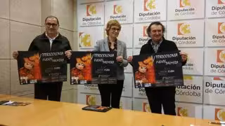 La responsable del área, Marisa Ruz, acompañada por el concejal de Cultura de Fuente Palmera, Enrique González, y José Diego Ramírez, de la Compañía 'El diablo cojuelo', ha explicado que "se trata de un proyecto singular porque hay pocos festivales de títeres en solitario a nivel internacional".
