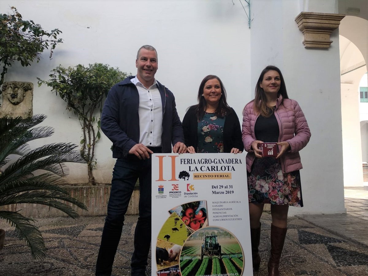 En rueda de prensa, la presidenta del Instituto Provincial de Desarrollo Económico (Iprodeco) y vicepresidenta segunda de la Diputación de Córdoba, Ana Carrillo, acompañada por el alcalde de La Carlota, Antonio Granados, ha destacado que "esta feria persigue impulsar sectores estratégicos tan importantes en la provincia como son la agricultura y la ganadería, principal actividad económica en muchos de nuestros municipios".