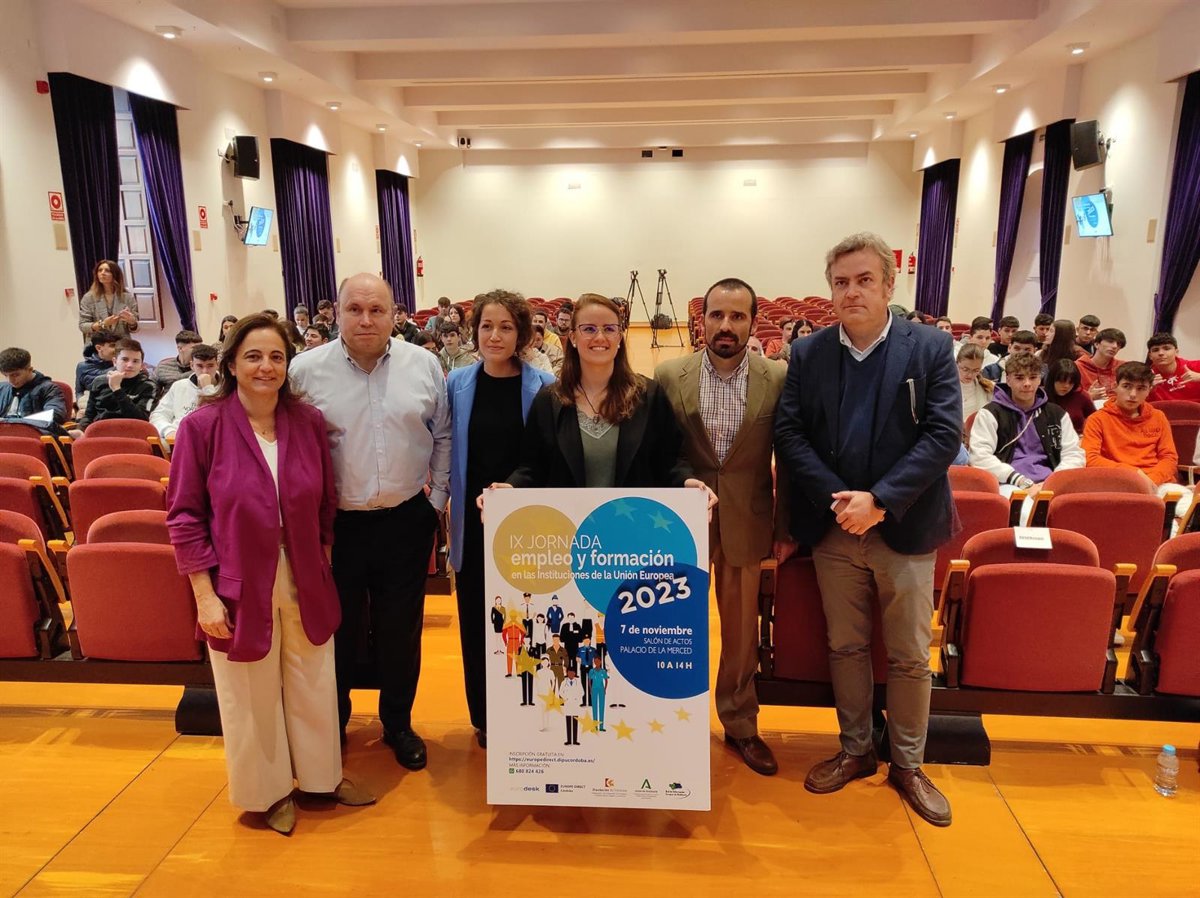 La delegada de Desarrollo Tecnológico, Transformación Digital y Juventud de la Diputación de Córdoba, Sara Alguacil (tercera por la dcha.), en la inauguración de la IX Jornada de Empleo y Formación en las Instituciones de la Unión Europea. - EUROPA PRESS