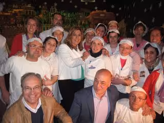 Susana Díaz con Juan Pablo Durán y Antonio Ruiz en el Belén de Chocolate de Rute