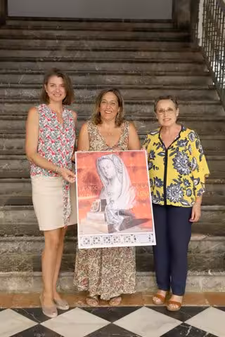 La delegada de Cultura de la Diputación de Córdoba, Salud Navajas (centro), junto al cartel de las XXIII Noches de la Media Luna de Aguilar de la Frontera. - DIPUTACIÓN DE CÓRDOBA