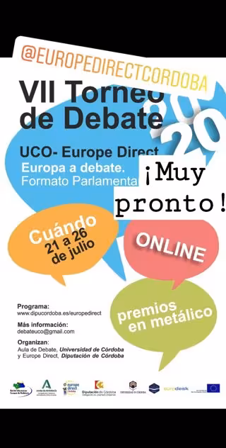 La Oficina de Información de Europe Direct, de la Diputación de Córdoba, organiza un año más el Torneo de Debate, que en esta edición tendrá un formato online y adquirirá un carácter más internacional con la participación de diversas universidades extranjeras.