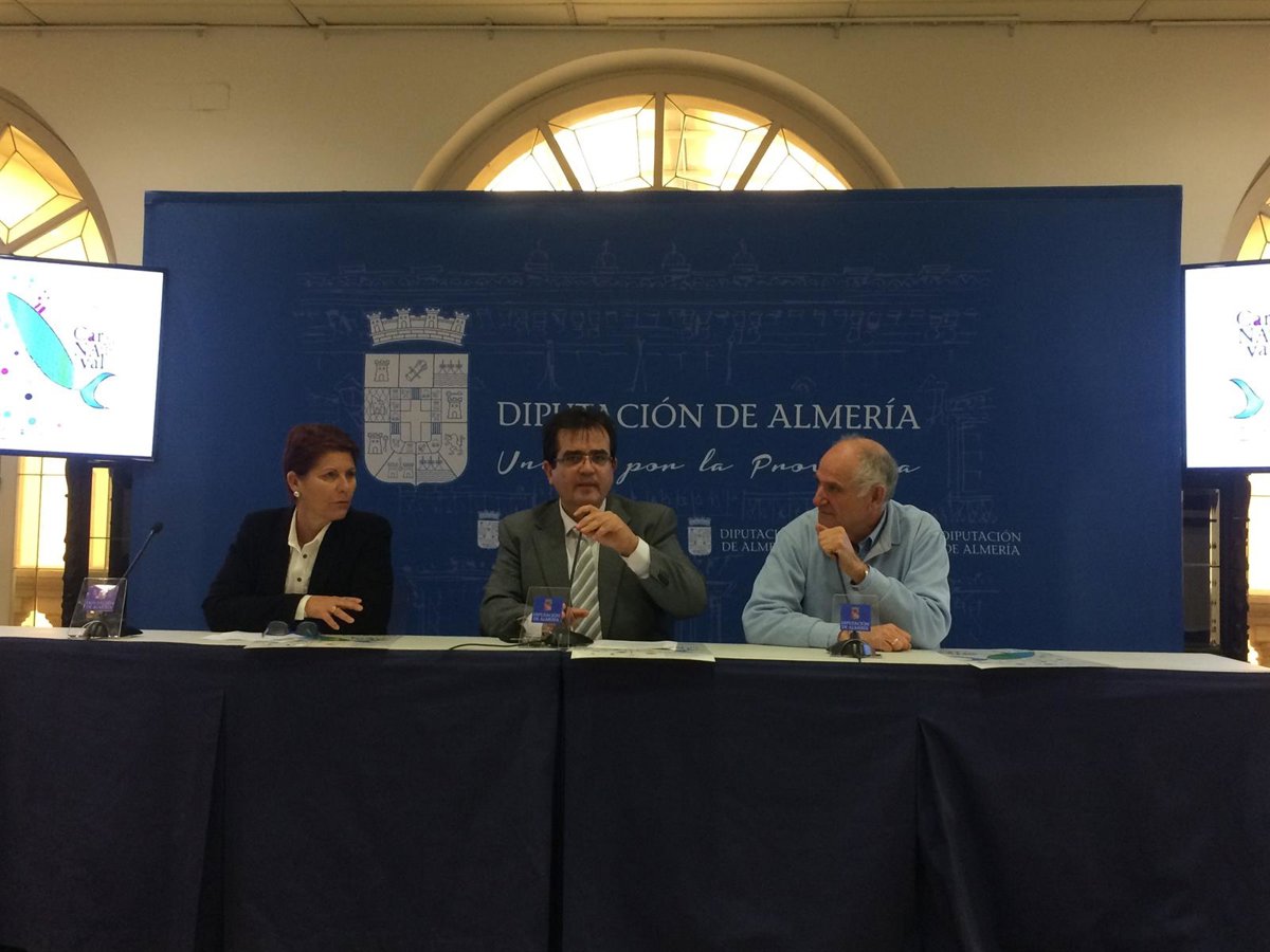 El diputado de Cultura, Antonio Jesús Rodríguez, ha presentado el circuito acompañado por Nicolás Castillo, presidente de la Federación de Agrupaciones de Carnaval (Fealca), y la concejala de Cultura del Ayuntamiento de La Mojonera, municipio sede del Día de Convivencia del Carnaval Provincial, Francisca Pardo.
