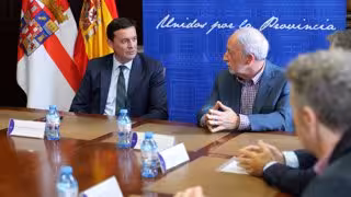 El presidente de la Diputación de Almería, Javier Aureliano García, junto al presidente de la Agrupación de Contratistas de Obra Pública de Asempal, Juan Lorenzo Jiménez. - DIPUTACIÓN DE ALMERÍA