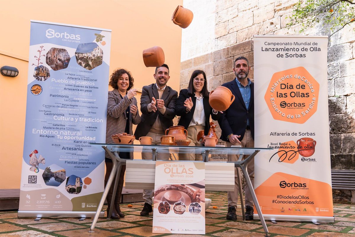 El municipio de Sorbas (Almería) celebrará este fin de semana, 14 y 15 de febrero, y también el martes 18, una nueva edición del tradicional Día de las Ollas, una fiesta arraigada en el patrimonio cultural del municipio que reunirá a vecinos y visitantes en torno a sus actos más representativos, entre ellos el campeonato mundial de lanzamiento de olla.