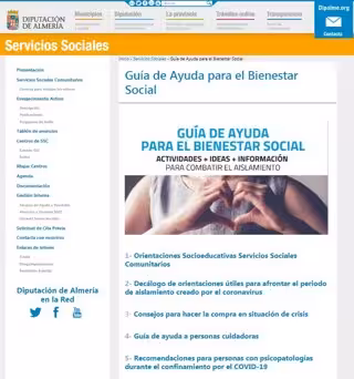 Captura de la web de la Diputación para acceder a las guías con consejos y rutinas para afrontar el confinamiento por el coronavirus - DIPUTACIÓN DE ALMERÍA
