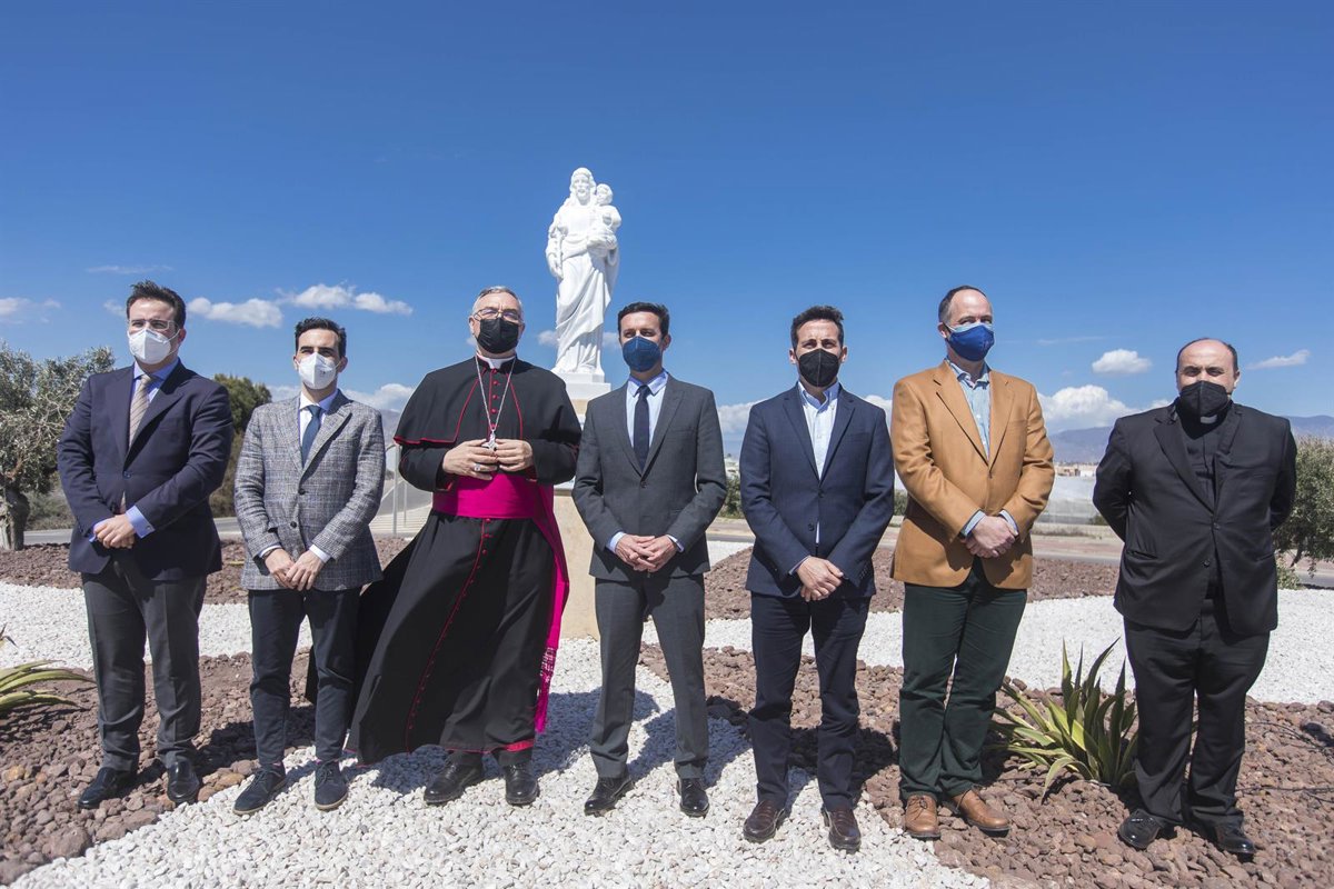 El presidente de la Diputación Provincial de Almería, Javier Aureliano García, y el obispo coadjutor de Almería, Antonio Gómez, han inaugurado este jueves el monumento dedicado a San José en una glorieta de la carretera AL-3200 que da acceso a la Universidad de Almería.
