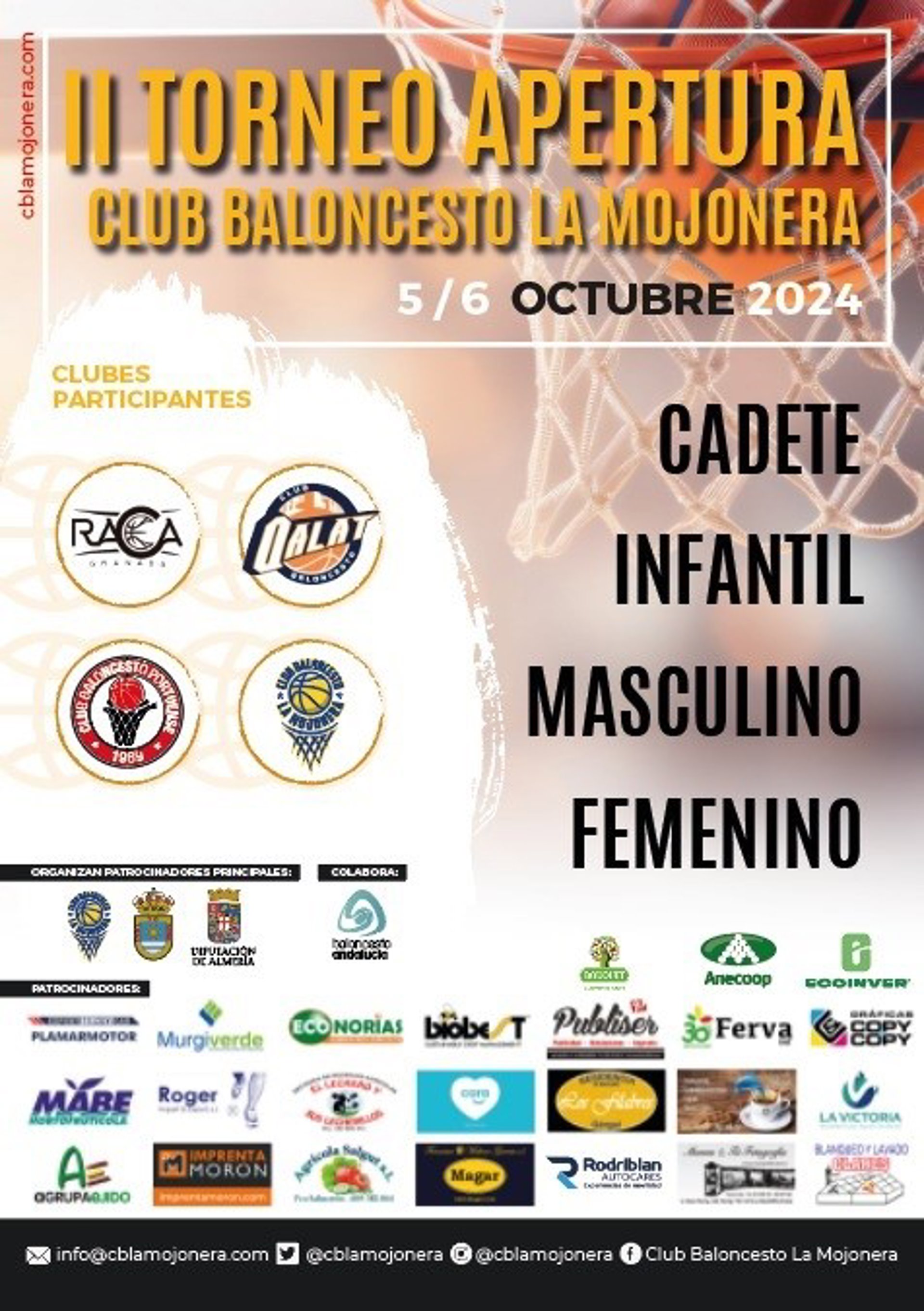 Cartel del II Torneo Apertura del Club de Baloncesto La Mojonera. - DIPUTACIÓN DE ALMERÍA