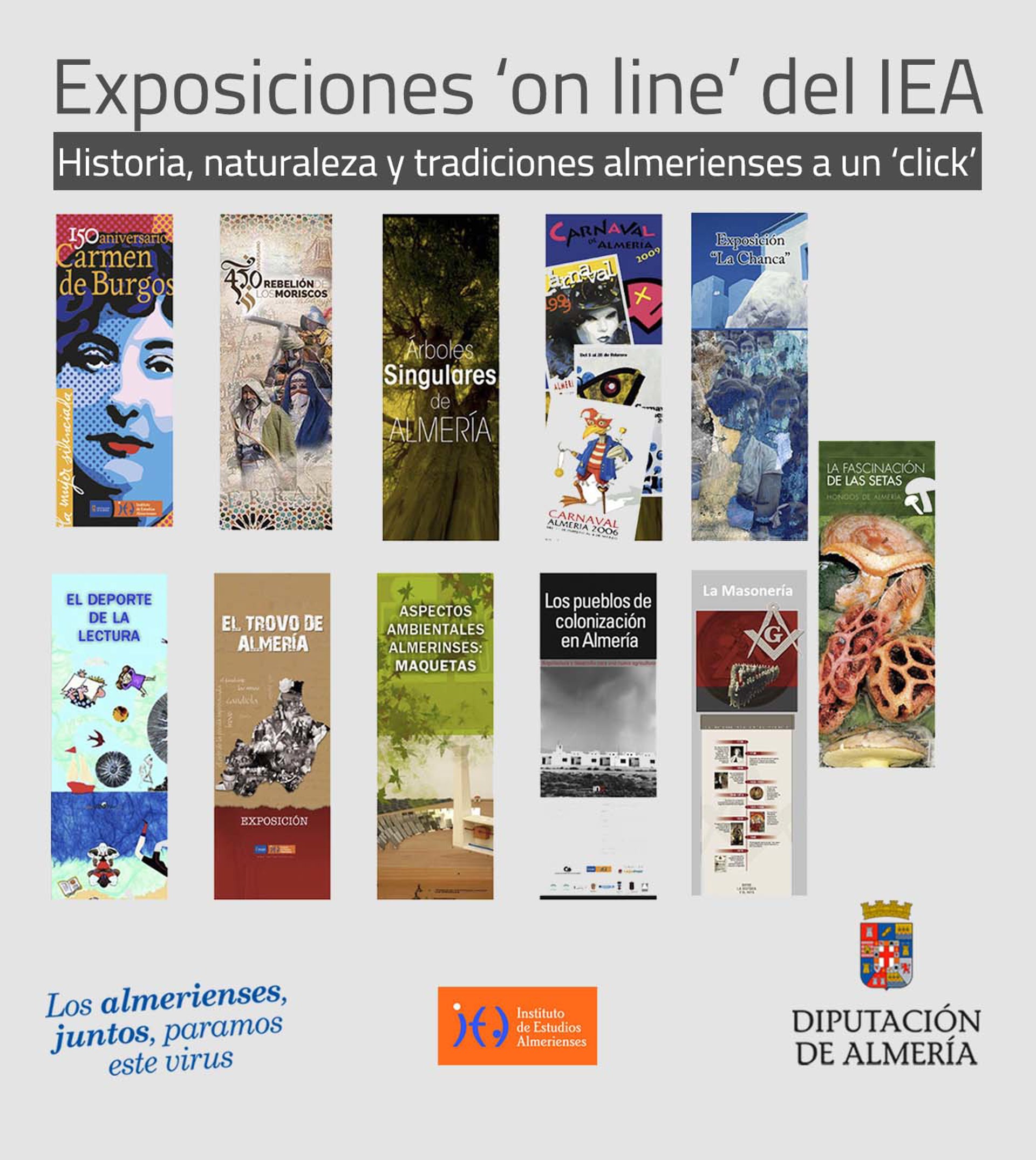 La Diputación Provincial de Almería va a ampliar con una nueva iniciativa su oferta de ocio, cultura, arte y deporte a golpe de clic durante el confinamiento para hacer frente al Covid-19. El Instituto de Estudios Almerienses ha habilitado en su web ('www.iealmerienses.com') once exposiciones sobre la historia, las tradiciones y naturaleza almeriense.