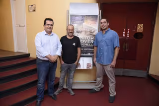 Juan Gabriel García y David Turpín han puesto el sello almeriense a la película 'Parada en el invierno' ('Stop over in Hell'), que ha vestido de gala el Teatro Cervantes de la capital para su estreno. Un acto al que ha asistido el diputado de Cultura, Antonio Jesús Rodríguez, para mostrar el apoyo de la Diputación Provincial y la Oficina 'Filming Almería' al sector cinematográfico almeriense.