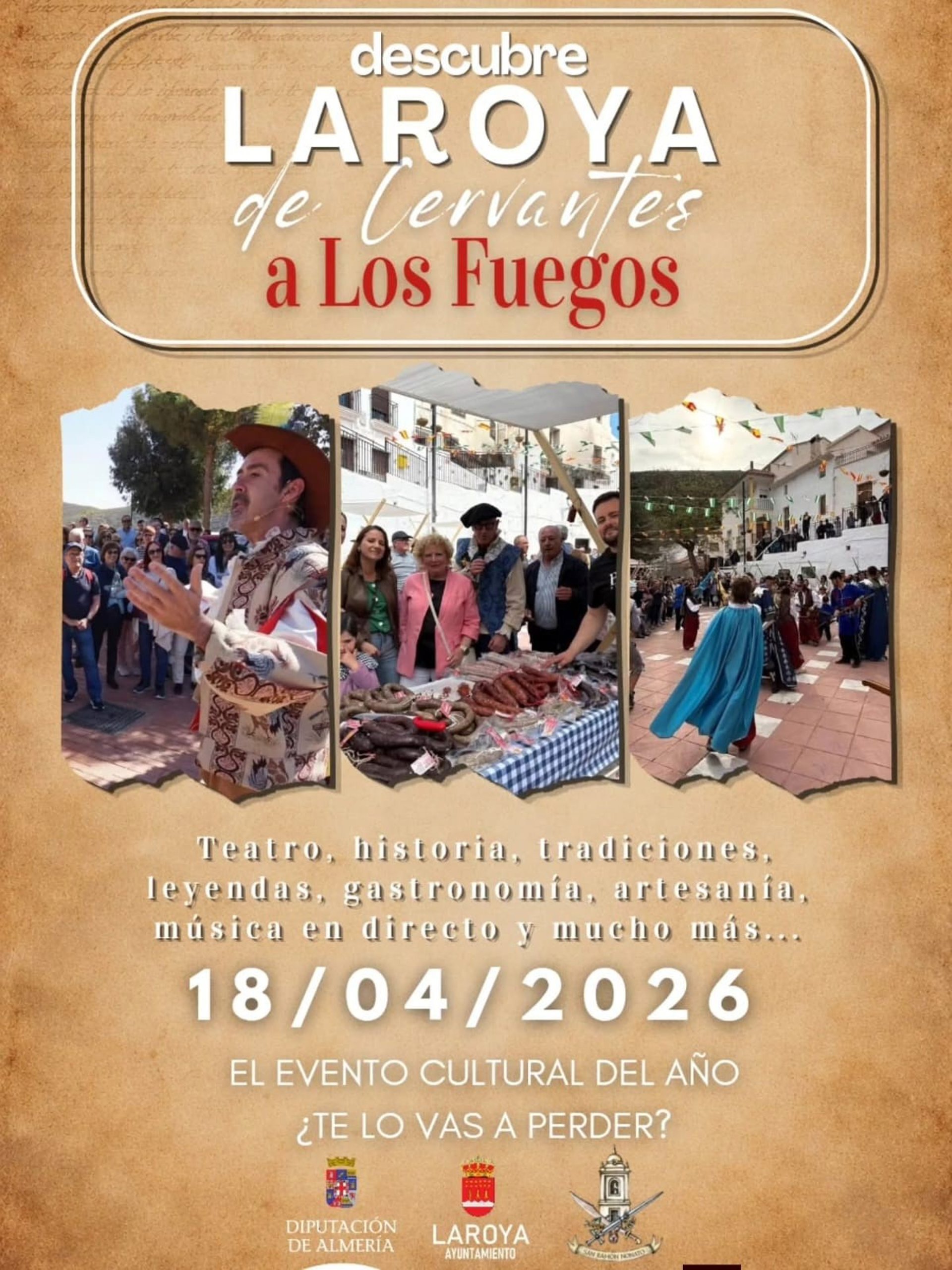 El municipio de Laroya (Almería) celebrará este sábado, 18 de abril, la jornada cultural y turística 'Descubre Laroya: De Cervantes a los Fuegos 2026', una cita que propone un recorrido por la historia, las tradiciones y la identidad local a través de diferentes actividades para todas las edades que se desarrollarán a lo largo del día.
