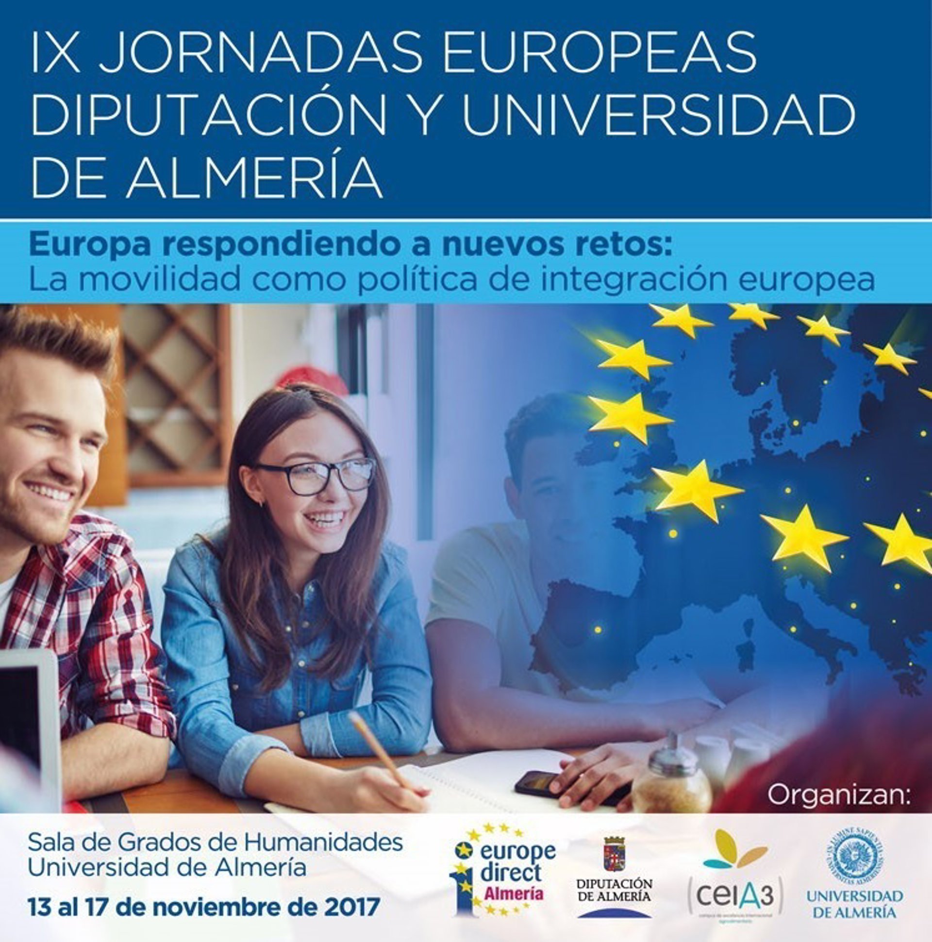 La novena edición de las Jornadas Europeas organizadas por la Diputación Provincial y la Universidad de Almería (UAL) se celebrarán en la Sala de Grados de Humanidades, en horario de tarde, entre el 13 y el 17 de noviembre. La actividad será coordinada por Ramón Herrera, del Departamento de Derecho Civil, y tendrá como título 'Europa Respondiendo a los Nuevos Retos: La movilidad como política de integración europea'.