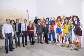La alcaldesa de Beires, Carmen González, ha recibido a García en el Ayuntamiento, donde ha firmado en el libro de honor y ha podido hablar con algunos trabajadores municipales y vecinos, entre ellos, un grupo de mujeres que, en ese momento, realizaba "un mural reivindicativo sobre la importancia de la mujer en la sociedad", enmarcado dentro de los talleres 'Carmen de Burgos' de la propia institución provincial.