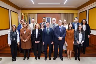 Según informa la Diputación en un comunicado, se trata de la primera institucional de García al municipio de este mandato en un pleno que también ha hecho historia para el municipio porque en él se han entregado las medallas de concejal a los miembros de la Corporación. Es la primera vez que los ediles cuentan con este importante símbolo y el alcalde la ha recibido de manos del presidente. Además, en este acto también se ha rendido homenaje a las dos ex secretarias que han trabajado en los últimos 10 años en el Ayuntamiento y a la nueva responsable de la secretaría e intervención.