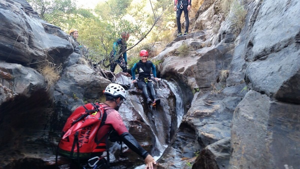 Una vez preparados, se ha iniciado el descenso de este espectacular barranco, lleno de rápeles, pozas y cascadas espectaculares. Un paraíso natural en Almería que se está dando a conocer y que está considerado como el mejor lugar para la práctica de barranquismo en la provincia.
