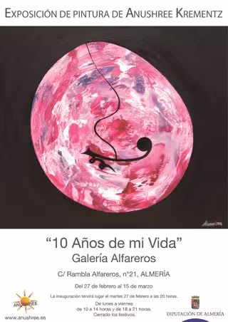 La Sala de Exposiciones Alfareros de la Diputación de Almería ha abierto sus puertas a una nueva exposición en la que se invita al visitante a viajar por la pintura evolutiva de la artista alemana afincada en Mojácar, Anushree Krementz. La muestra se compone de una veintena de obro en las que se repasa la antología artística de la pintora y se podrá disfrutar hasta el 15 de marzo.