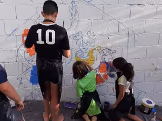 Este taller tiene dos modalidades a elegir por cada municipio: pintura en caballete donde cada familiar creará su propio lienzo, o pintura de un mural realizado por todas las familias participantes, que favorece la interrelación entre los diferentes núcleos familiares.