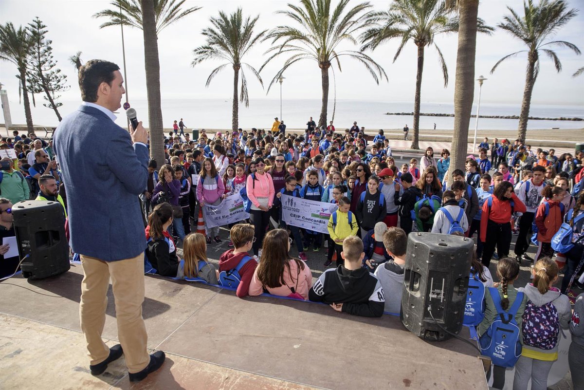 Un total de 800 escolares de 18 centros educativos de la provincia han participado en la actividad 'Caminando por un reto', organizada por la Diputación Provincial y la Universidad de Almería, en la que han recorrido cinco kilómetros de caminata por la costa para combatir la obesidad.