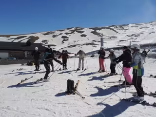 Durante la mañana, los participantes en la actividad han recibido clases de esquí por parte de los monitores, quienes les han repartido el material y les han acompañado en la subida hasta Borreguiles. Allí, algunos miembros del grupo han recibido clases de iniciación y otros sesiones más avanzadas, mientras que otro grupo ha practicado el esquí y el snowboard de forma libre.