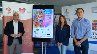 La directora técnica del Club Deportivo Gimnasia Rítmica Vera, Ana Raquel Archilla, junto al concejal de Deportes del Ayuntamiento de Vera, Alfonso García, y el Diputado Provincial de Deportes, José Antonio García, han presentado este viernes en Pabellón Moisés Ruiz de Almería los detalles de la III edición del Torneo Nacional de Gimnasia Rítmica de Vera, que se celebrará en el municipio levantino este sábado.