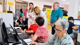 Durante el recorrido han podido ver cómo personas usuarias realizaban la actividad Edufinet, un proyecto de educación financiera que transmite conocimientos con el objetivo de promover la transparencia, la seguridad y la responsabilidad en las relaciones financieras de los ciudadanos.