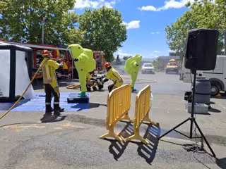 El ejercicio coordinado por el sargento Manuel Blanco ha sido una de las actividades centrales. Se ha simulado un accidente de tráfico en el que se ve implicada una furgoneta con productos químicos destinados a una depuradora. Como consecuencia del siniestro, la mezcla de sustancias genera una nube tóxica --en este caso, de cloro--, obligando a activar protocolos específicos de intervención ante riesgo NBQ (Nuclear, Biológico y Químico).