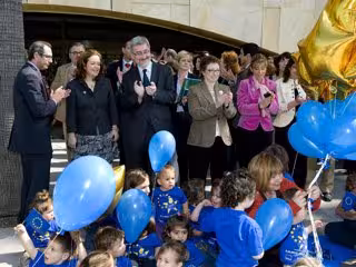 En esta primera actividad, que ha tenido lugar en el edificio de Torretriana, en Sevilla, se ha izado de la bandera de la Unión Europea, al mismo tiempo que un cuarteto de cuerda ha interpretado la 'Oda a la alegría'. Asimismo, los alumnos de la escuela infantil de Torretriana, ataviados con camisetas diseñadas para la ocasión, han presenciado el evento y han participado en una actividad con globos.