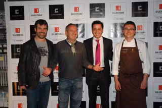 El acto, que estuvo apadrinado por los cocineros Karlos Arguiñano, Andoni Luis Aduriz, y Bruno Oteiza, estuvo presidido por el gerente del center de San Sebastián, Jose Manuel Cruz Alvarado, por el director comercial de Grupo Cosentino, Eduardo Martínez-Cosentino, así como por la responsable de los Cosentino Centers, Isabel Martínez-Cosentino.