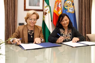 La presidenta de la Diputación de Huelva, Petronila Guerrero, dentro de la campaña "Huelva va más allá", ha firmado un convenio con la empresa de supermercados Mercadona para "fomentar la industria agroalimentaria de la provincia mediante la promoción de los productos onubenses".