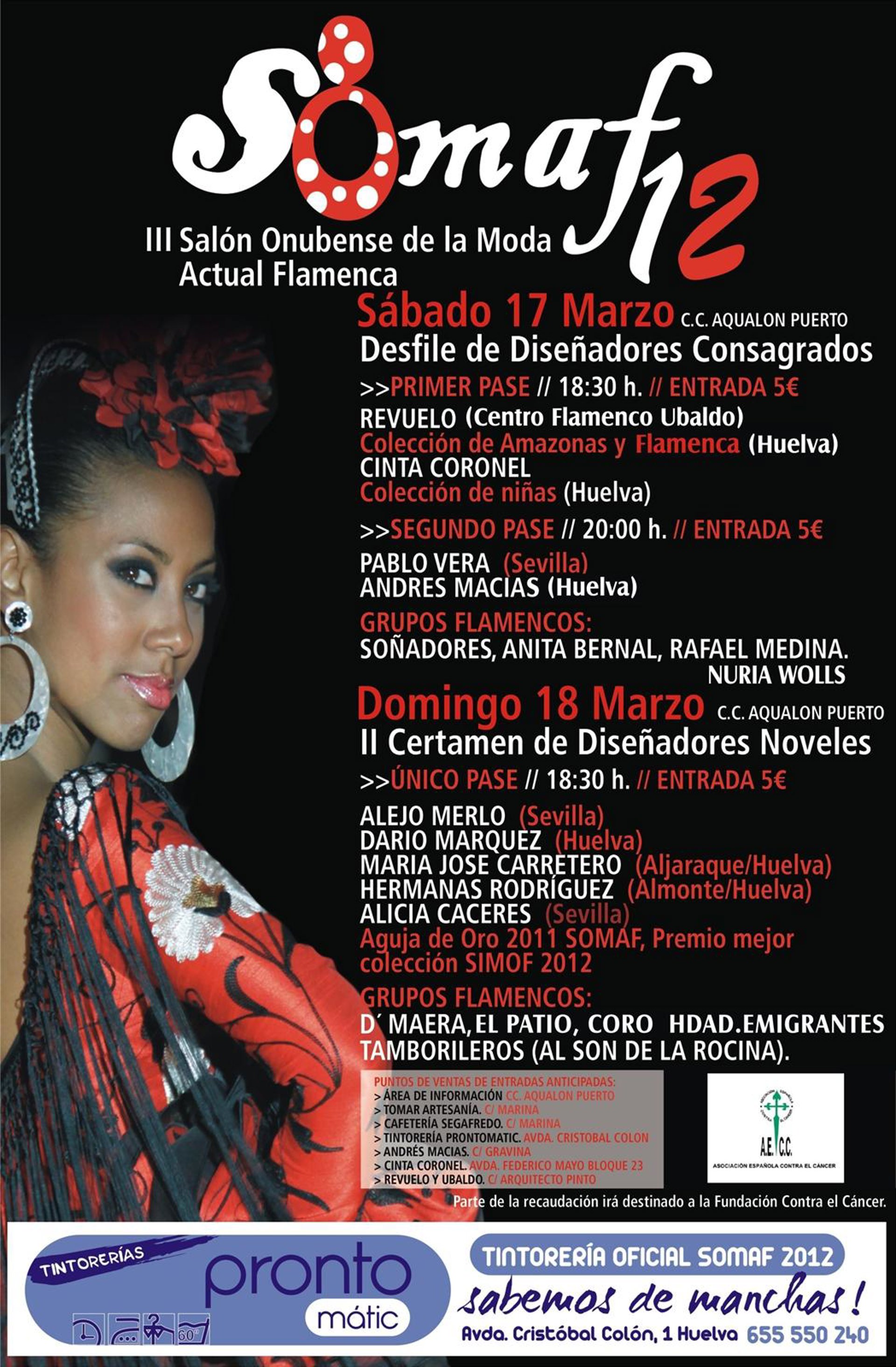Somaf 2012 se mantiene "firme" en su empeño de fomentar y desarrollar el sector de la moda flamenca y su tejido industrial, adaptando el traje regional a los grandes cambios de la pasarela. Por ello, los diseñadores invitados demostrarán que el traje de flamenca sigue "más vivo que nunca y que el atrevimiento y el ingenio de los jóvenes talentos no está reñido con la perfección y la experiencia de diseñadores consagrados".