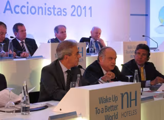 La sociedad Hoteles Participados, que ostenta el 5,428 por ciento del capital de la hotelera que preside Mariano Pérez Claver, está controlada en un 50 por ciento por Caixanova y el 50 por ciento restante por Caja Murcia.