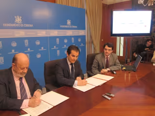 Así lo han rubricado este lunes en la firma del convenio de colaboración el alcalde de Córdoba, José Antonio Nieto, acompañado por el concejal de Gestión, José María Bellido, y el presidente de la delegación española de la Fundación Europea de la Sociedad de la Información, José María Gil Robles.