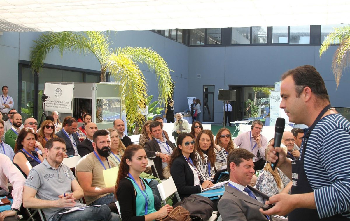 La conferencia inaugural ha estado a cargo del gaditano Ángel León, conocido como el Chef del Mar y que cuenta con dos estrellas Michelín por su restaurante Aponiente. Su intervención se ha centrado en explicar cómo utilizando los productos del mar ha creado una cocina única, situando a El Puerto de Santa María y Cádiz en el mapa del mundo gastronómico.