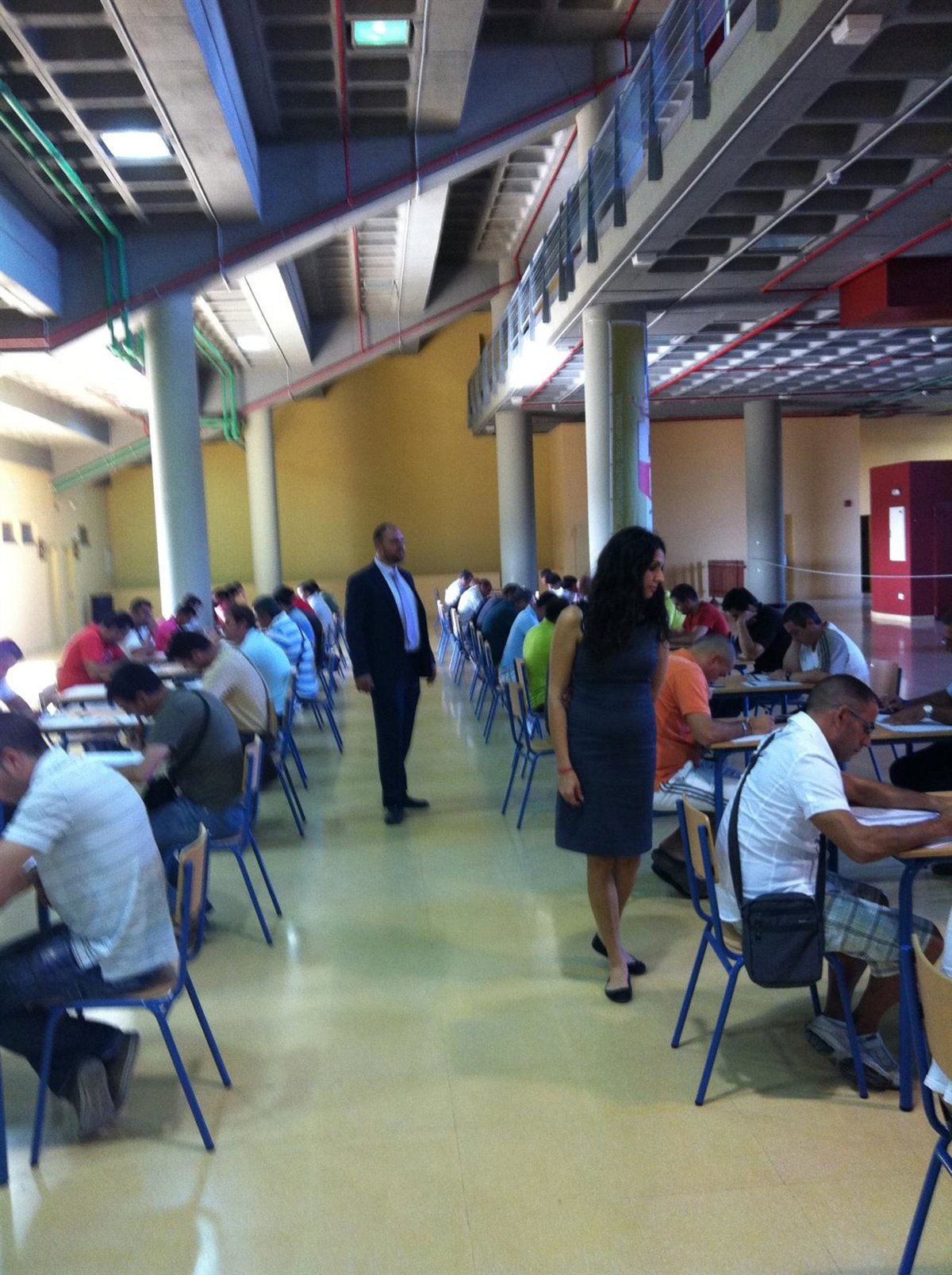En total, concurrieron a estos exámenes eliminatorios 152 personas, de las cuales 126 son extrabajadores de la fábrica Cerámica Bellavista. Cada lunes, desde el 22 de agosto hasta el 5 de septiembre, los candidatos se acercaban al hipódromo de Dos Hermanas (Sevilla), donde también tendrá lugar el curso, para realizar pruebas de temática específica como electrónica, mecánica, física electromagnética y electrónica.