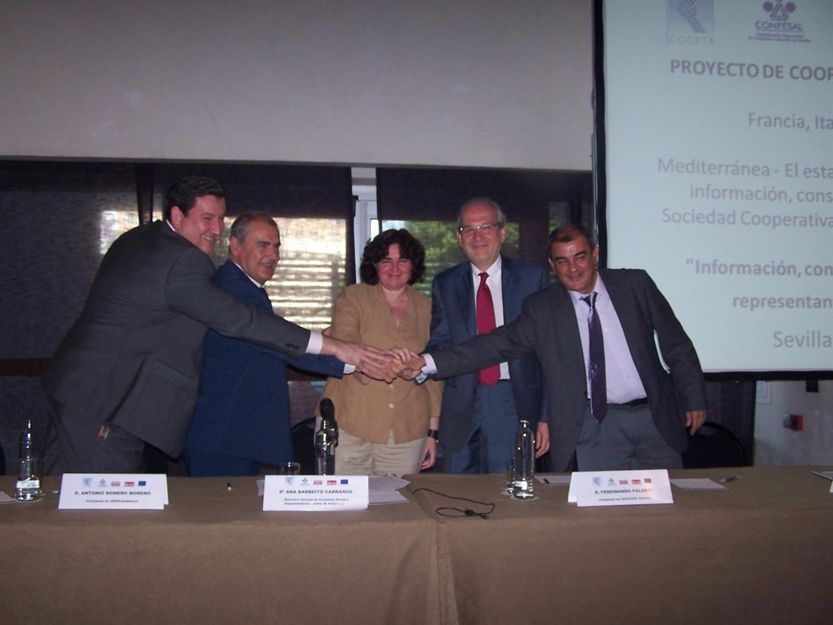 La firma del convenio se ha producido en el entorno de la celebración de una jornada transnacional desarrollada en Sevilla bajo el título 'Mediterráneae: el establecimiento de estructuras de información, consulta y participación en una Sociedad Cooperativa Europea del Sector Servicios', que ha reunido a representantes de la economía social de diversos países europeos participantes en este proyecto --España, Francia, Malta, Italia--. La inauguración del acto ha sido realizada por la directora general de Economía Social de Andalucía, Ana Barbeito, acompañada por el presidente de Cepes-Andalucía, Antonio Romero.
