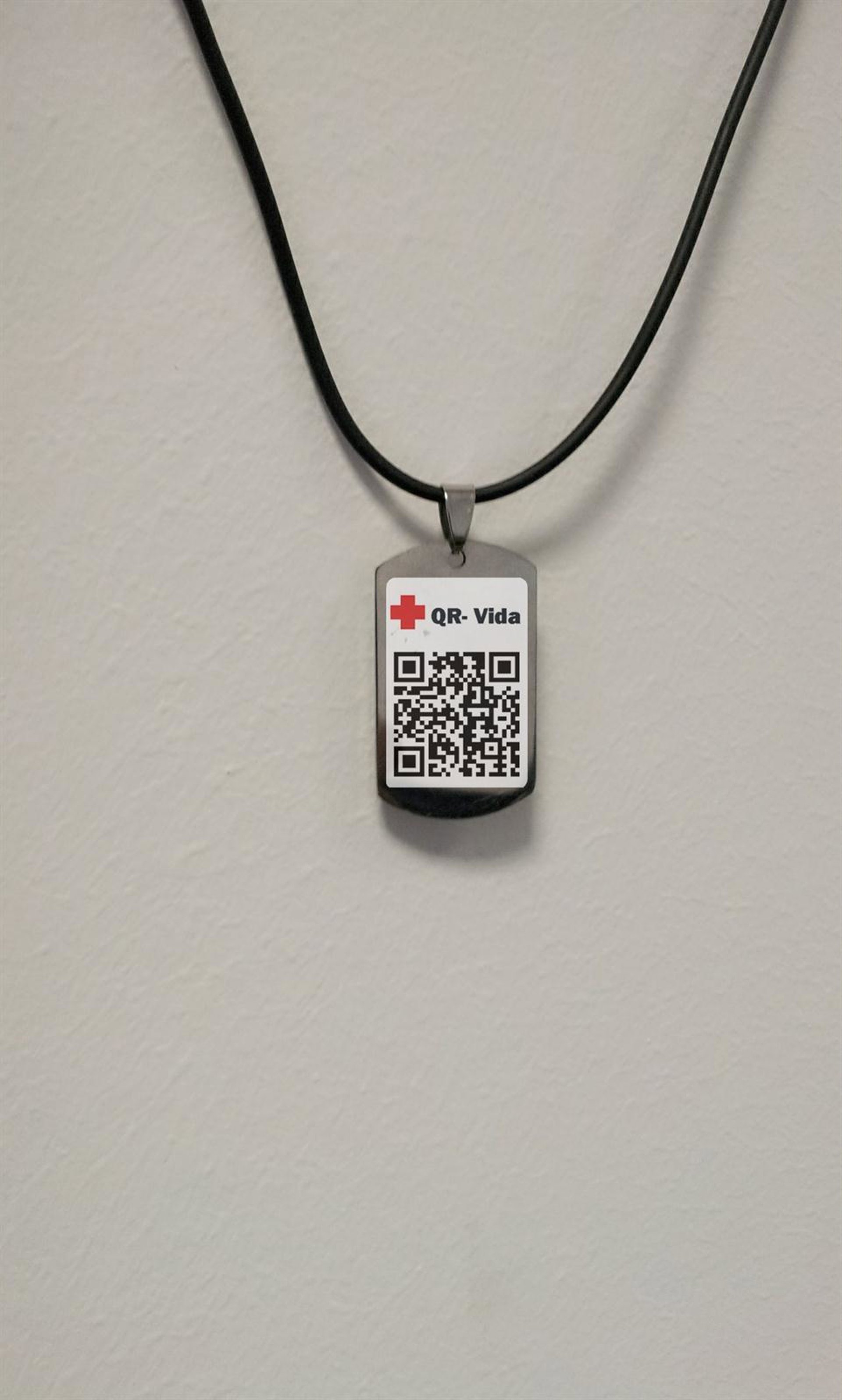 De este modo, la gargantilla incluye un código QR protegido con una gota de resina que puede leerse por medio del teléfono móvil y contiene información vital del portador, la cual puede actualizarse "todas las veces que se quiera y estime necesario".