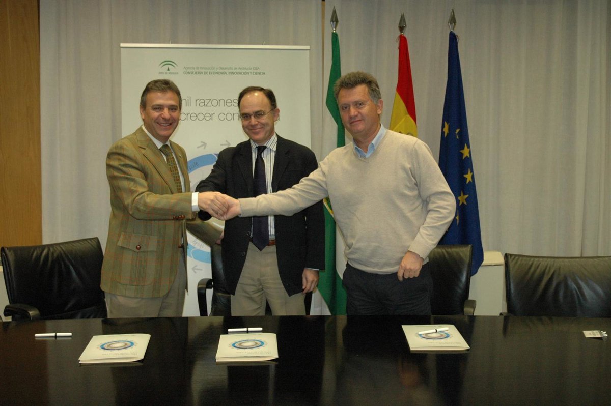 El director general de la Agencia de Innovación y Desarrollo de Andalucía (IDEA) de la Consejería de Economía, Antonio Valverde; el director general de Andalucía y Extremadura de Endesa, Francisco José Arteaga, y el alcalde de El Campillo (Huelva), Francisco Javier Sánchez, han firmado este miércoles un protocolo de actuaciones para impulsar el desarrollo del Parque Empresarial de la Cuenca Minera de Huelva.