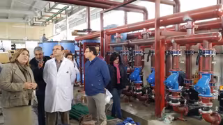 Jiménez (1i), en la planta de energía del Hospital San Juan de la Cruz.